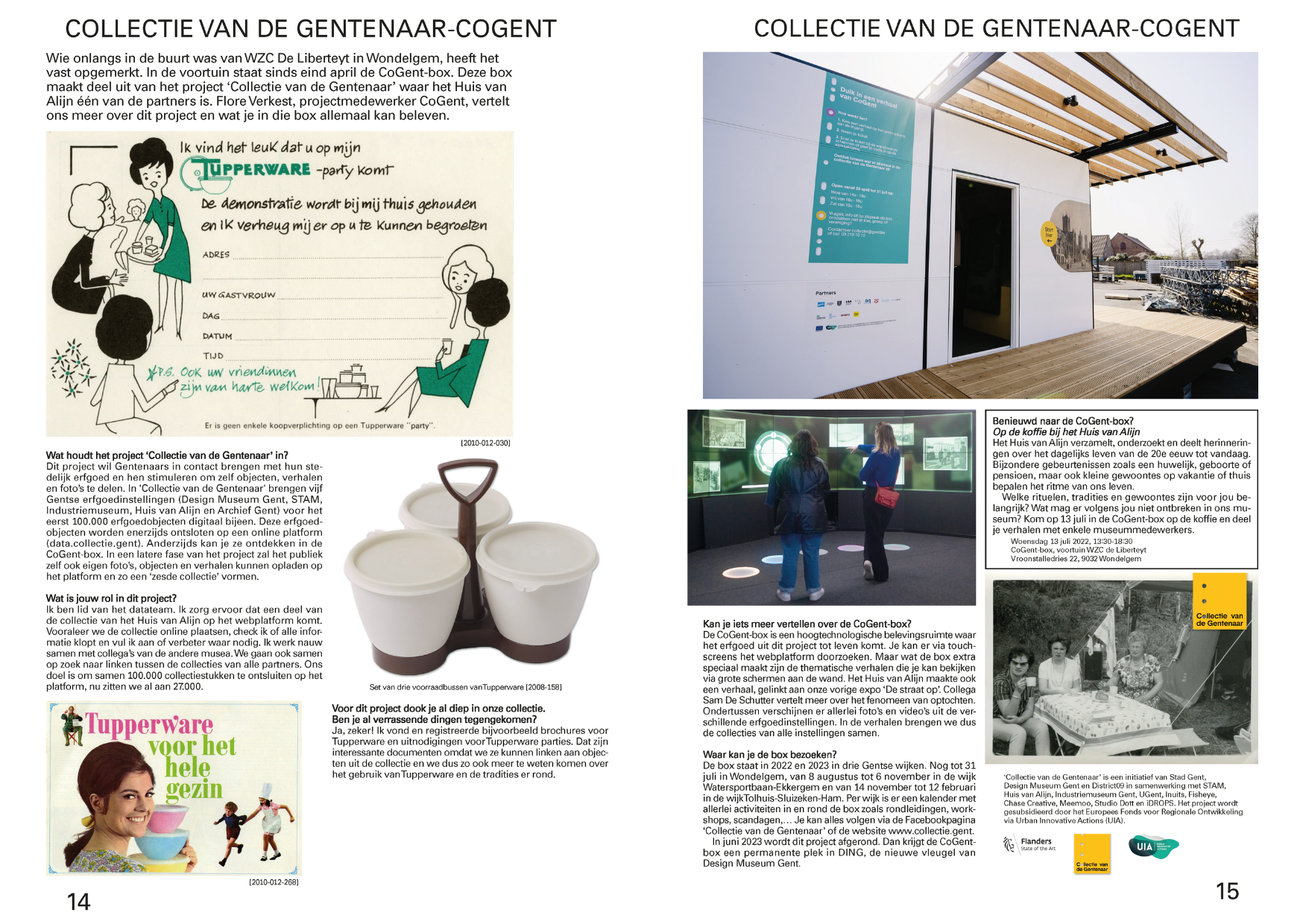 Wat als burgers, musea en erfgoedinstellingen vrij en creatief gebruik konden maken van elkaars objecten, documenten en verhalen? In het project Collectie van de Gentenaar ontsluiten Design Museum Gent, STAM, Industriemuseum, Huis van Alijn en Archief Gent samen voor het eerst 100.000 erfgoedobjecten.